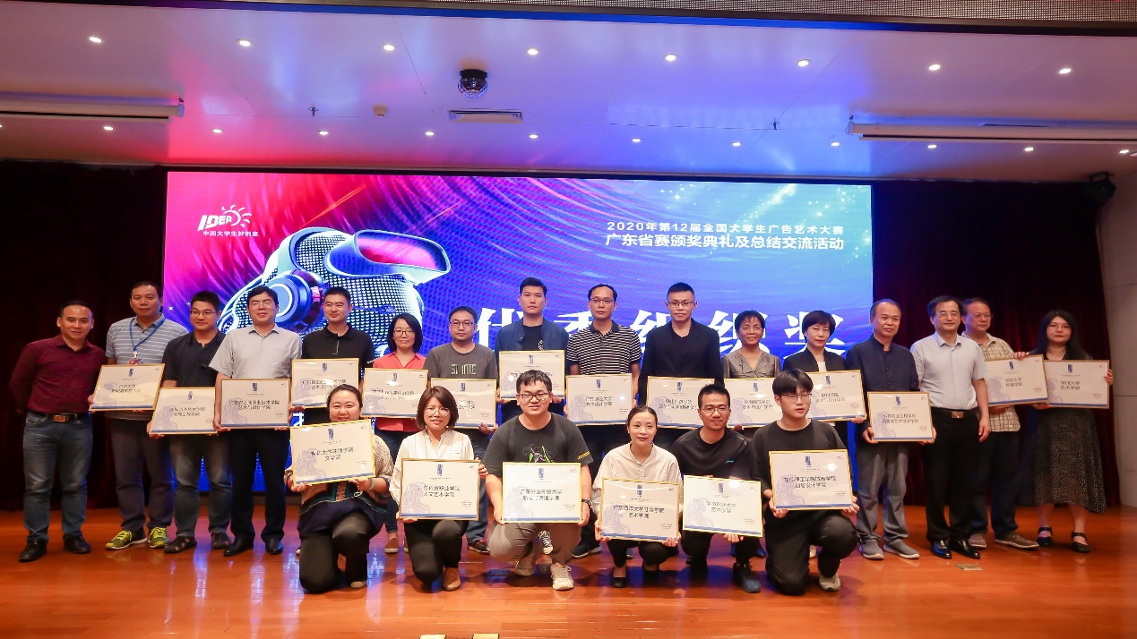 11月20日,威尼斯官网创意与设计学院领导和优秀指导教师代表及获奖学生代表参加了第十二届全国大学生广告艺术大赛广东省赛区颁奖仪式。活动由全国大学生广告艺术大赛广东省分赛区组委会主办,广州大学新闻与传播学院、深圳大学传播学院承办。本次学科竞赛,创意与设计学院共获得73个省级奖项和7个国家级奖项。其中省级优秀指导老师奖4个,一等奖5个,二等奖26个,三等奖38个;全国二等奖1个,三等奖1个,优秀奖5个。
