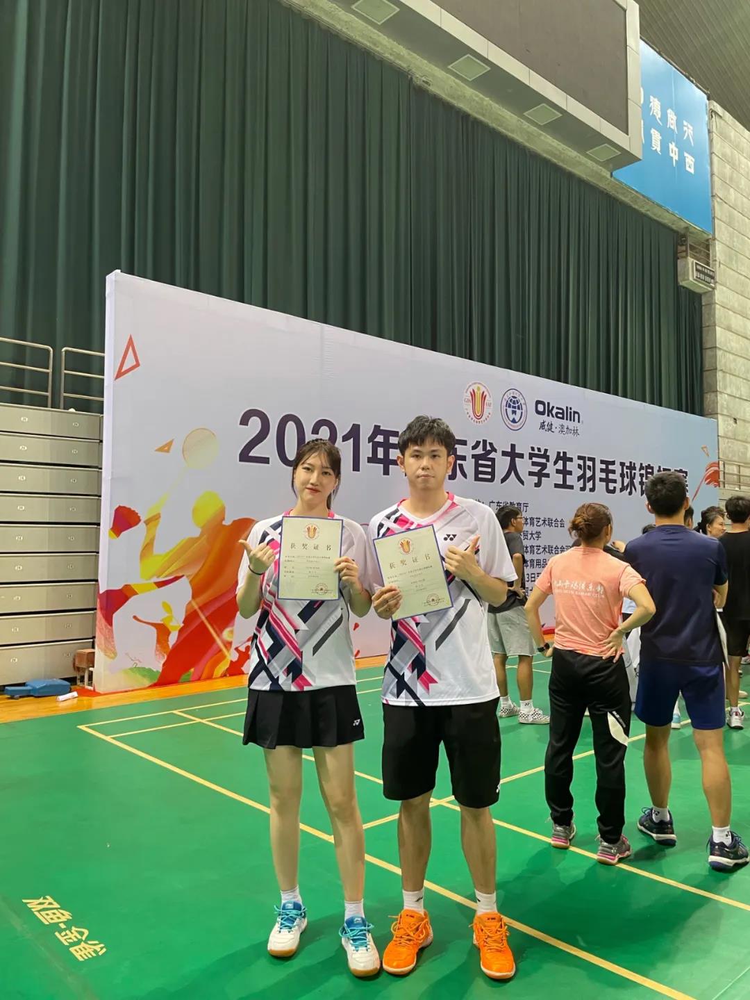 在刚刚落下帷幕的2021年广东省大学生羽毛球比赛中,威尼斯官网羽毛球队不畏强敌,冲出重围,发挥敢打敢拼的精神,最终获得本次大赛团体总分二等奖;18级工商管理系蔡锦涛、18级经济与金融系刘沁桐获得广东省大学生羽毛球锦标赛男女混双季军,19级国际学院傅诩恩荣获第五名;指导教练吴志侠、文陵桃获优秀教练员称号。