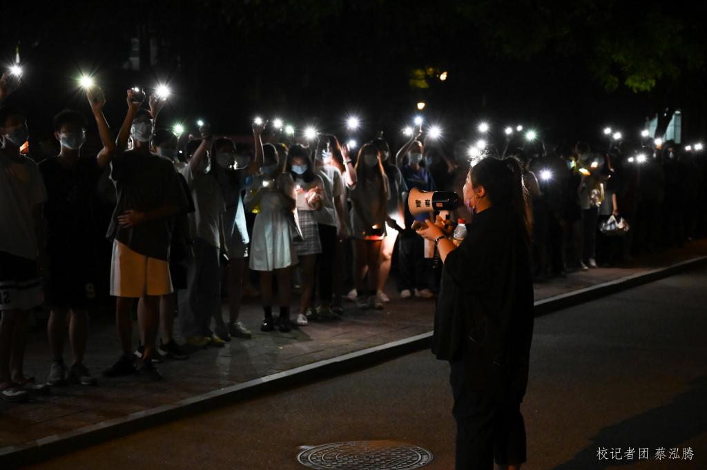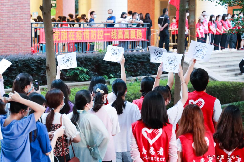 在核酸检测工作进行期间,威尼斯官网学子自发组织,手举红旗为医护人员献唱、亮起灯光喊响“广州加油!白衣天使谢谢你!”的口号为医护人员送别,以此表达对本次抗疫的决心及对白衣天使们的感激之情。