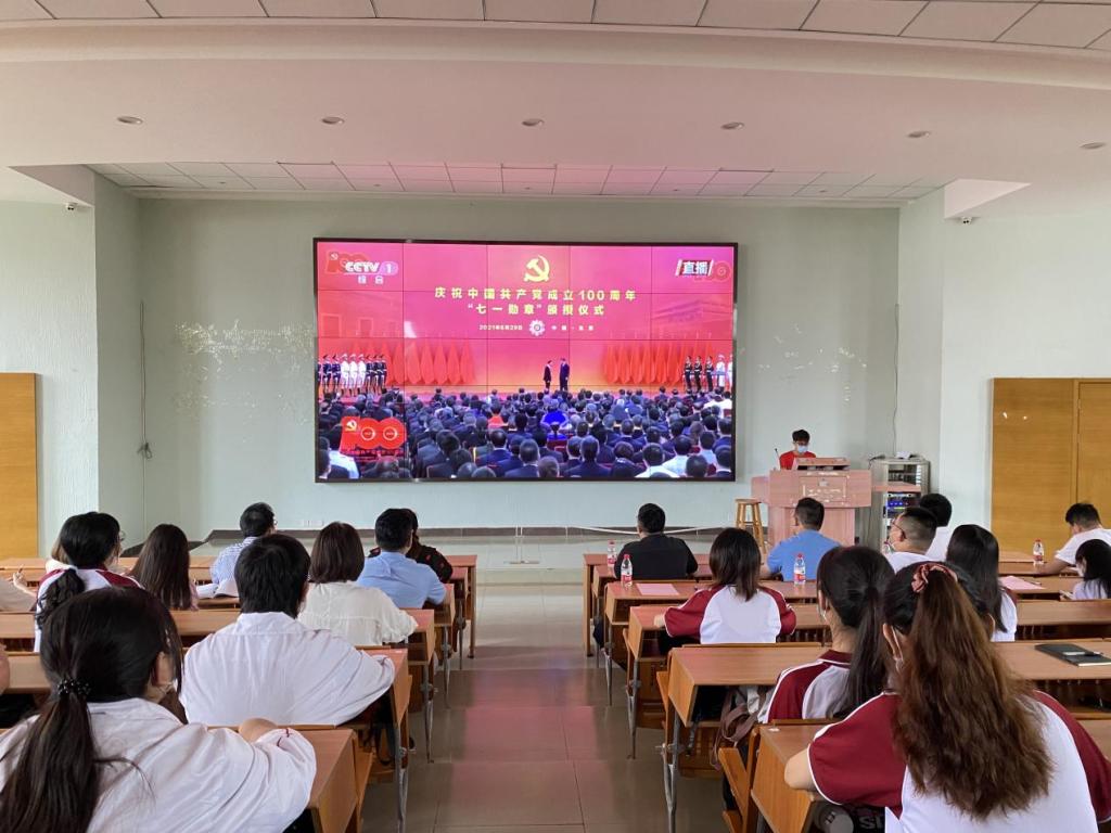 为深入开展“学党史,强信念,跟党走”党史学习教育,在学校党委的领导下,校团委组织各二级院系团总支书记、学生骨干以及团员青年代表在励志楼C408全程观看庆祝中国共产党成立100周年“七一”勋章颁授仪式,并学习贯彻习近平总书记在“七一勋章”颁授仪式上的重要讲话精神。