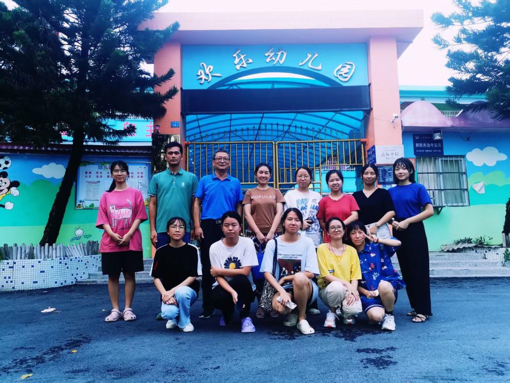 师生在欢乐幼儿园门口合影留念