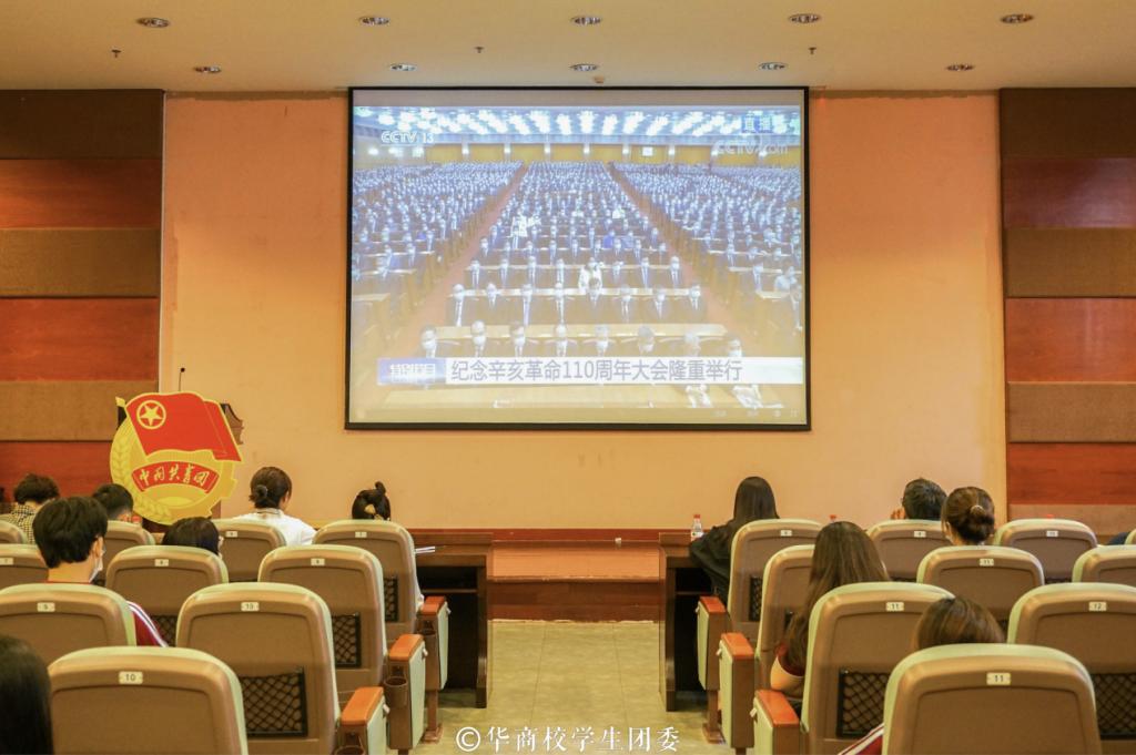 百年峥嵘初心如磐。10月9日上午10时,纪念辛亥革命110周年大会在北京人民大会堂隆重举行,中共中央总书记、国家主席、中央军委主席习近平出席大会并发表重要讲话。在学校党委的指导下,学校团委热切关注大会盛况,于华商学院国际会议中心4楼报告厅设立分会场,组织各二级学院团总支书记、校级学生组织学生骨干及各二级学院学生代表集体观看直播。深切缅怀孙中山先生等辛亥革命先驱的历史功勋,认真学习习近平总书记重要讲话精神。此外,其他团员青年亦通过不同方式收听、收看直播。