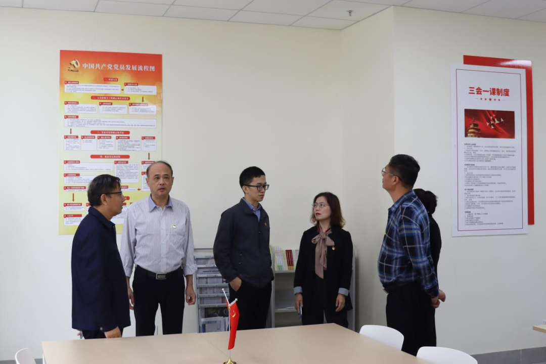会前,苏宁书记及相关负责同志,陪同指导组成员实地走访师生服务办公区域、公共教学楼智慧教室、图书馆、体育场、师生宿舍、饭堂、四会校区党史学习教育主题展览——“广州起义”图片展以及图书馆党史学习教育专区等地,通过实地察看、走访调研等详细了解四会校区党史学习教育开展情况并给予工作指导。