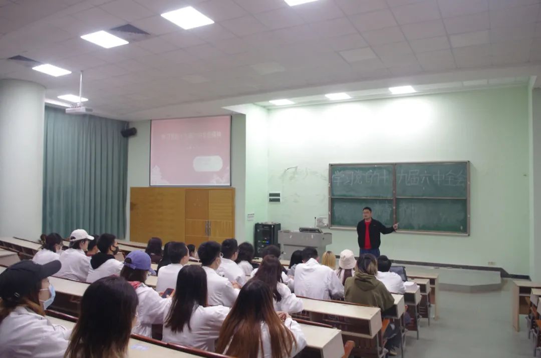 健康医学院学工主任、团总支书记郑志伟带领同学们深入学习党的十九届六中全会精神,积极领悟全会精神重大意义,进一步学深悟透全会重要内涵,不断巩固提升青年思想意识,以实践践行青年初心使命。通过学习,青年团员纷纷表示:要牢记党百年光辉历程和伟大成就,从党的百年奋斗史中汲取凝聚青年的磅礴伟力,始终坚定听党话、跟党走的理想信念,不忘党的嘱托和团的使命,扛起时代重任,书写时代担当,为实现中华民族伟大复兴的中国梦贡献青春力量!