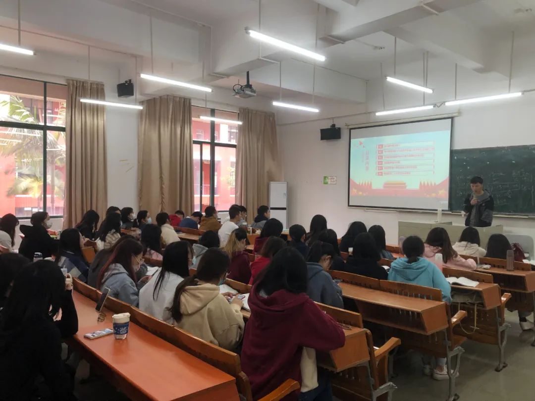 管理学院团总支书记江思、学生会指导老师徐煜忻联合开展党的十九届六中全会专题学习会。通过学习,管理学院的团员青年们更加深刻理解党百年奋斗的历史逻辑、理论逻辑以及实践逻辑,立志要在全面建设社会主义现代化国家新征程上听党话、感党恩、跟党走。会上,团员们还分享了心得体会,认真总结这一年来的学习情况,将学习效果真正落到实处。