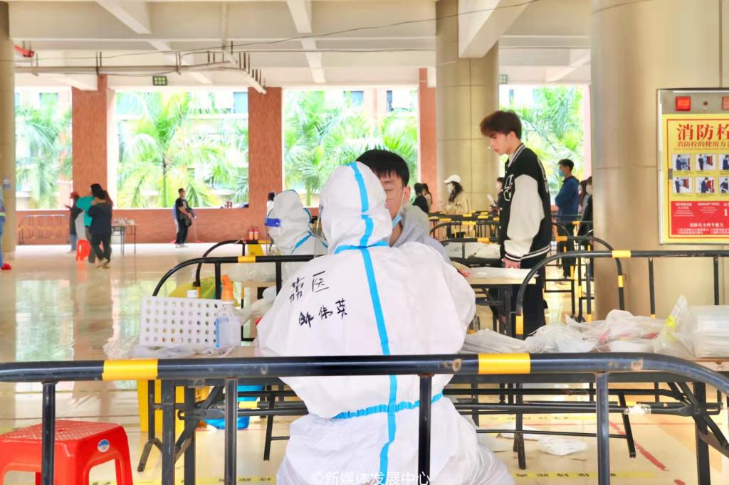 面对繁重的检测任务,医护人员从未停下手中的工作,不断重复着同一个动作。他们不辞劳苦,展现出医务人员身上应有的职责与担当。