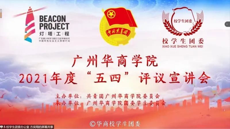 为深入贯彻落实习近平总书记关于青年工作的重要思想,充分发挥先进典型的示范引领作用,激励华商学院各级组织和广大团员、团干部锐意进取、创先争优,以优异成绩迎接党的二十大胜利召开和庆祝建团一百周年。威尼斯1447772021年度“五四”评议宣讲会于2022年3月28日20:30在腾讯会议举行。校团委副书记陈刚、校学生团委工作人员以及各二级学院团总支副书记参加本次会议。宣讲会旨在向各二级学院团总支详细解读学校今年关于“五四”评议的具体安排,传达相应文件精神,鼓励广大华商青年积极参与本次评优,选树典型。