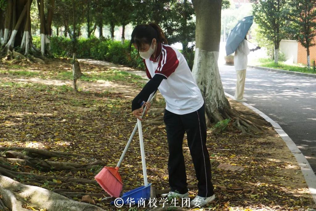 在校学生团委工作人员的带领下,青马班和团校学习班的学员们参与到本次活动中。到达指定志愿活动区域后,学员们马上开始紧张有序的清扫工作。活动过程中,他们对校道上的垃圾、落叶进行细致清理。每一次俯身、划动扫帚都表现了当代青年的干劲和精气神。他们合理分工,团结协作,完成负责区域的清扫任务,用实际行动践行“我为群众办实事”的初心,将“保护环境,爱护校园”的理念内化于心,外化于行,使校园环境焕然一新。学员们分工明确,认真清扫校园,各司其职,为校园公共卫生环境奉献青春力量。