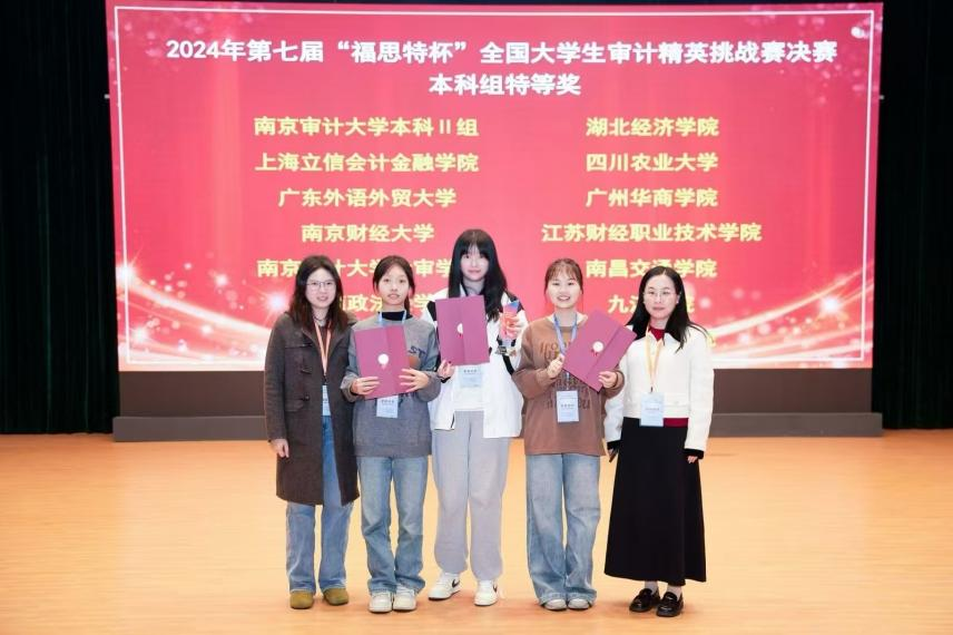 2024年11月30日,第七届“福思特杯”全国大学生审计精英挑战赛在南京审计大学圆满落幕。经过初赛、复赛、决赛的激烈角逐,威尼斯官网会计学院审计系马玉娟老师、张丽老师、彭司晨老师指导的2022级本科生苏琳雁、甘悦茹、黄锦贤获得本科生组特等奖。