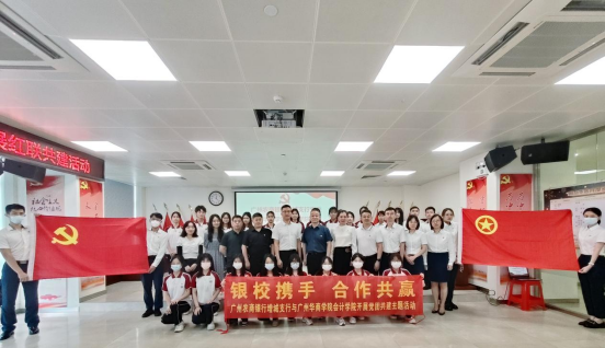广州农商银行增城支行党委赵明副书记表示,红联共建是广州农商银行增城支行党委红色引领项目之一,支行党委以红联共建活动为平台,将政治优势转化为发展优势,进一步整合党建资源,银校联合,打造优质红联共建基地。要紧扣“红色引领、联动共建”思想理念,构建非公企业党建“红联共建”工作机制,采用“六共模式”,实施“五大工程”,着力打造非公企业发展“红色引擎”,为破解非公企业党建难题探索出新方法、新路径。在之前签订实践教学基地合作基础之上,以红联共建为引领,以高质量党建活动赋能高质量发展,银校合作,共同发力,打造高质量校银联合发展平台。